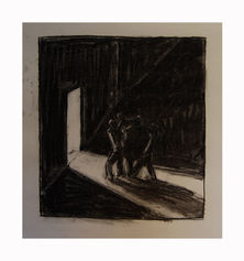 Looking from the window from a train leaving Guanzou in the early evening i saw through the debris and smog 4 men fighting outside a building the images below are my interpretation of that event
